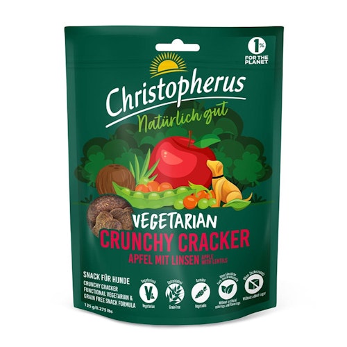 Der Christopherus Vegetarian Crunchy Snack Apfel mit Linsen ist ein nachhaltiger, getreidefreier, veganer Hundesnack mit funktionalen Zutaten für gesunde Verdauung und beste Verträglichkeit.