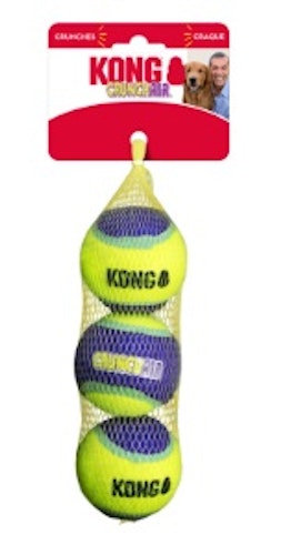 KONG Crunch Air Balls erzeugen Knackgeräusche, die Hunde begeistern und gleichzeitig ihren natürlichen Kau- und Jagdinstinkt befriedigen. Der KONG Crunch Air verfügt über ein ideales Sprungverhalten, das perfekt für interaktive Spiele geeignet ist. Durch seine Strapazierfähigkeit wird für noch länger anhaltende Apportier-, Fang- und Kauspiele gesorgt. Hinzu kommt, dass das KONG Tennis-Material speziell entwickelt wurde, um Zähne und Zahnfleisch zu schonen und Hunden somit fortdauernde Spielfreude ermöglicht.