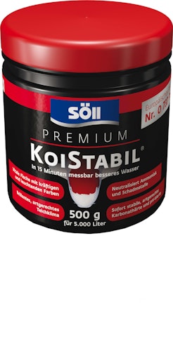 Premium KoiStabil hält, was der Name verspricht: Ein stabiles Teichklima für Koi und andere anspruchsvolle Teichfische durch einen dauerhaft artgerechten pH-Wert und eine stabile Karbonathärte (KH). Das Produkt erhöht die echte Karbonathärte und stellt den pH-Wert bei etwa 7,8 ein. pH-Wert-Schwankungen werden verringert. Premium KoiStabil schafft optimale Lebensbedingungen für Flora und Fauna im Gewässer und erhöht dessen biologische Selbstreinigungskraft. Premium KoiStabil unterstützt zudem das Wachstum und die Vermehrung algenfressender Fischnährtierchen und schafft für schadstoffabbauende Mikroorganismen optimale Bedingungen.