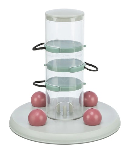 Der TRIXIE Gambling Tower für Katzen bietet einen rutschfesten Turm mit 3 Einschüben, 4 spülmaschinengeeigneten Abdeckkugeln und einem Trainingshandbuch.