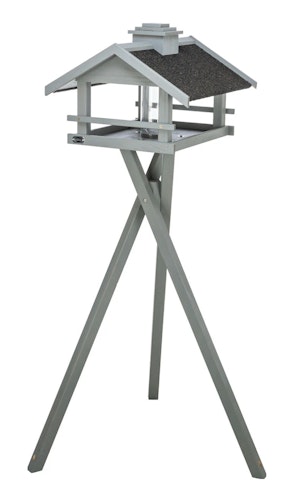 TRIXIE Futterhaus mit Ständer & Silo, Kiefernholz, 49 × 34 × 45 cm/1,34 m, grau