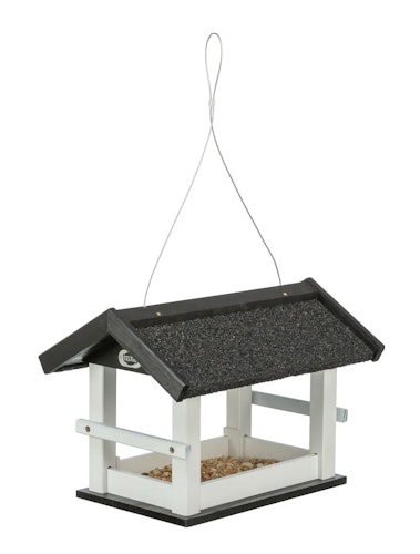 TRIXIE bietet ein hängendes Futterhaus aus lasiertem Kiefernholz für Vögel mit abnehmbarem Deckel, großer Landefläche und einfacher Reinigung.