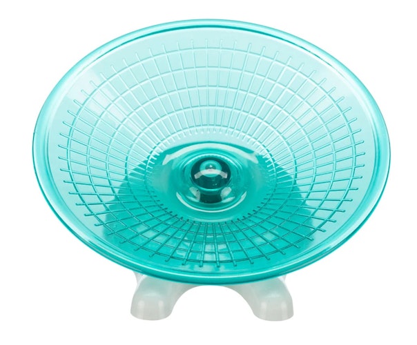 TRIXIE bietet einen Laufteller aus Kunststoff für Degus und große Hamster, der leichtgängig, leise und rutschfest ist, um die Wirbelsäule zu schonen.