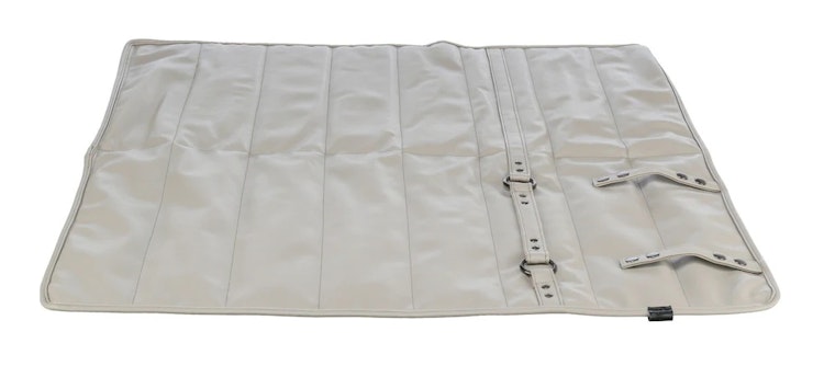 • Stilvolle hellgraue Reisedecke aus Kunstleder