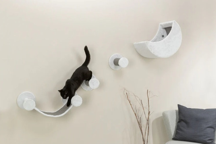 Das TRIXIE Wandset für Katzen besteht aus 4 Teilen mit Liegemulde, Hängematte und Kratzflächen aus Sisal, ideal zur Wandmontage.